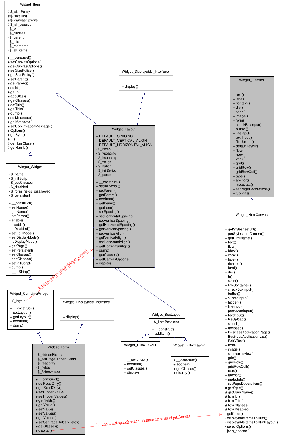 Diagramme simplifié des classes de la librairie Widgets